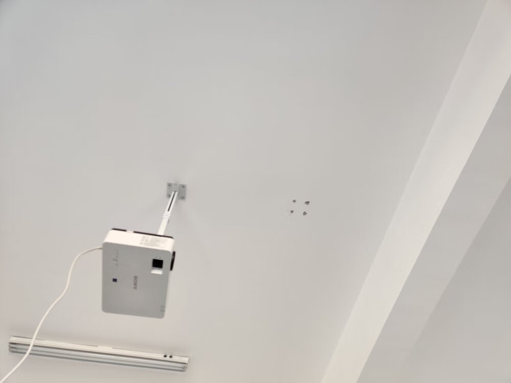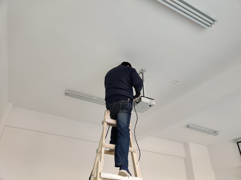 因为需要自己垫钱先给单位装了投影仪,看着还行,价格也还合理,给送了一条15米的高清HEMI数据线,顺着房顶走下来只能到墙角,又自费买了一条延长线。投影效果还算可以,白天强光情况下也能看得见,但感觉清晰度不是很好,毕竟价位摆在这里。