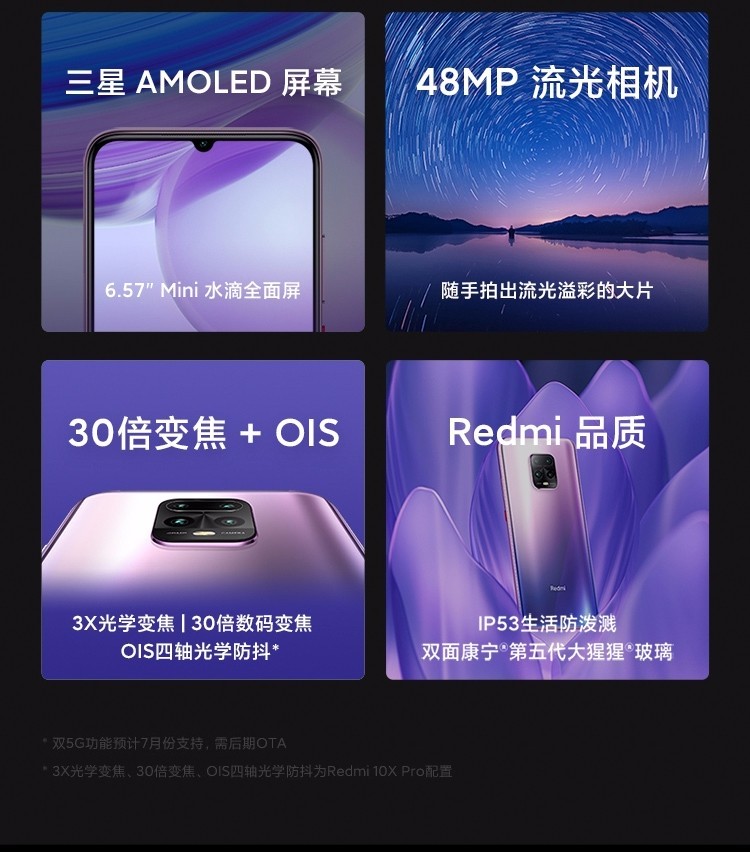 小米 Redmi 红米 10X 5G小米10X 4800万流光相机 水滴全面屏 全网通5G手机 星露白 6+128G全网通5G