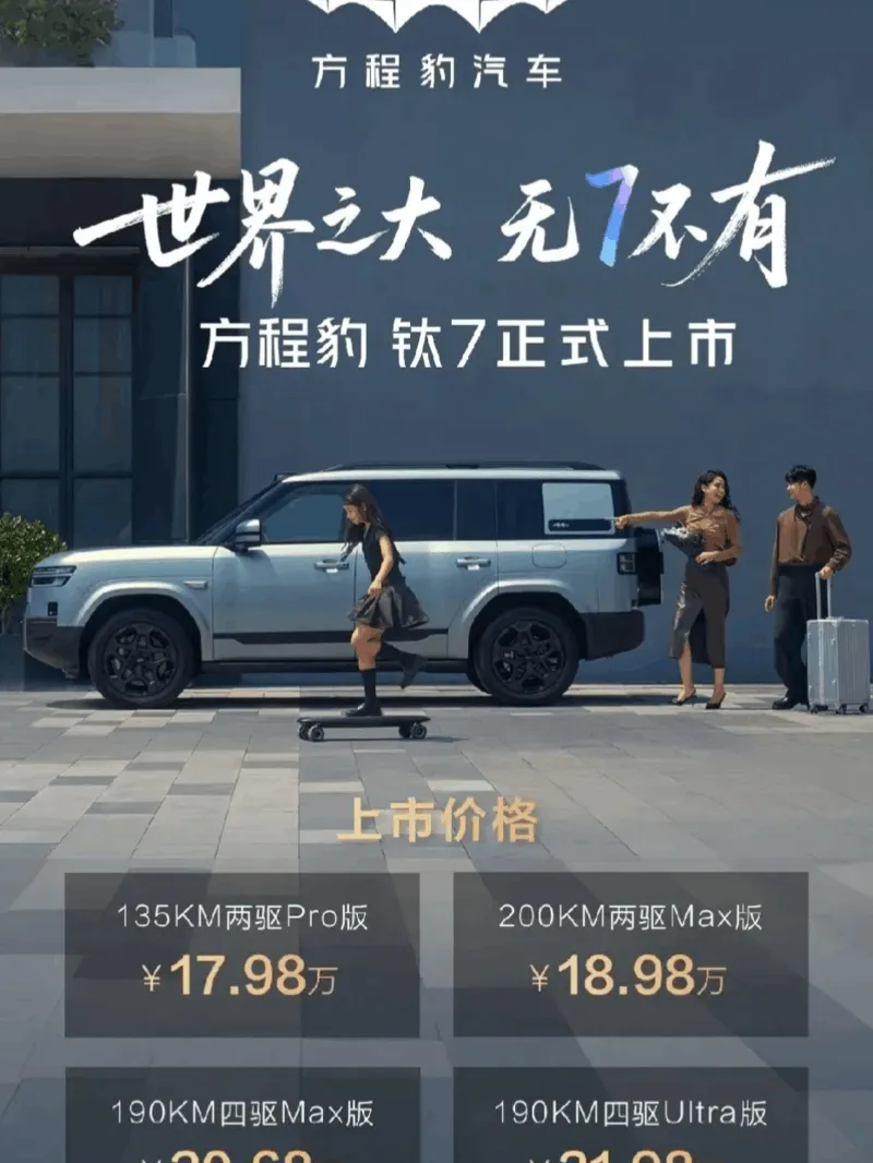 王传福说过,得混动者得天下!作为可油可电的插混纯越野方盒子车型,感觉方程豹钛7能把坦克300按在地上摩擦!