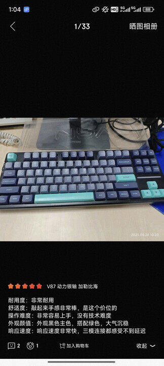 键盘颜值很高,按键回弹力度也很舒服,连接也很稳定,用来办公还是很不错的,目前还没有发现问题,值得推荐的一款。