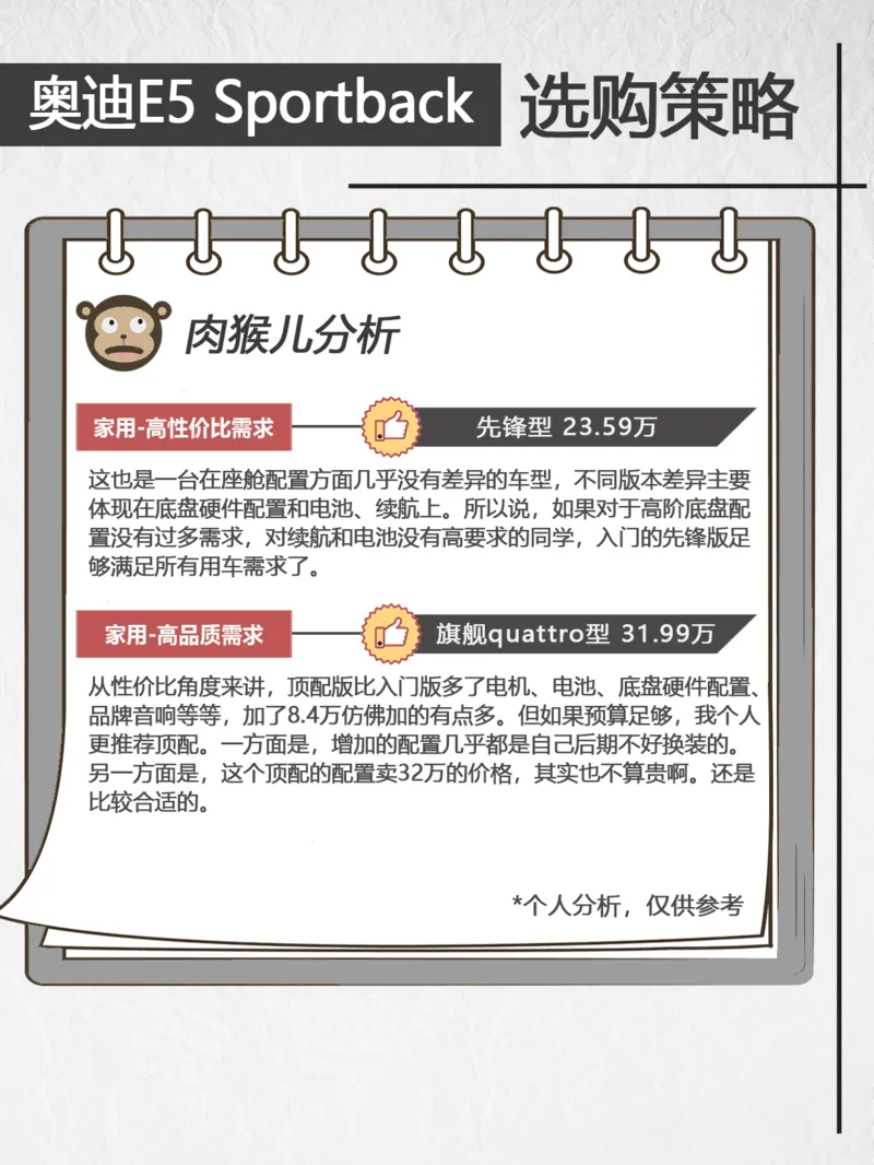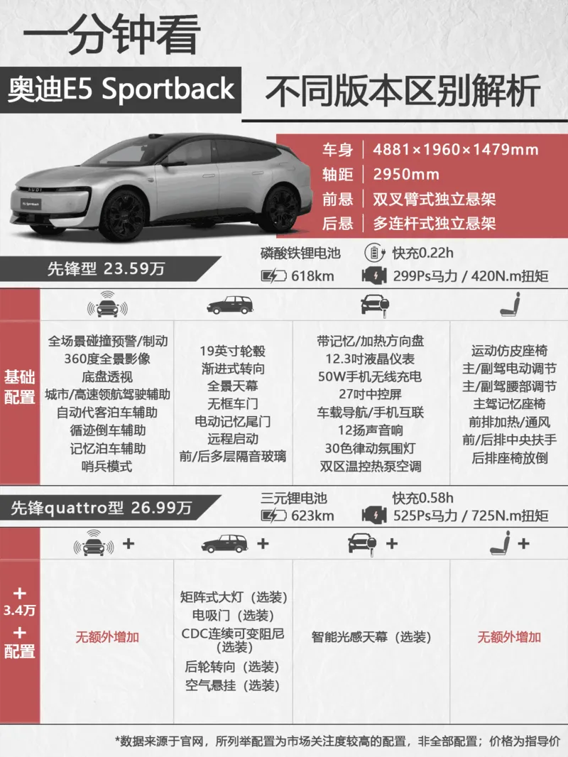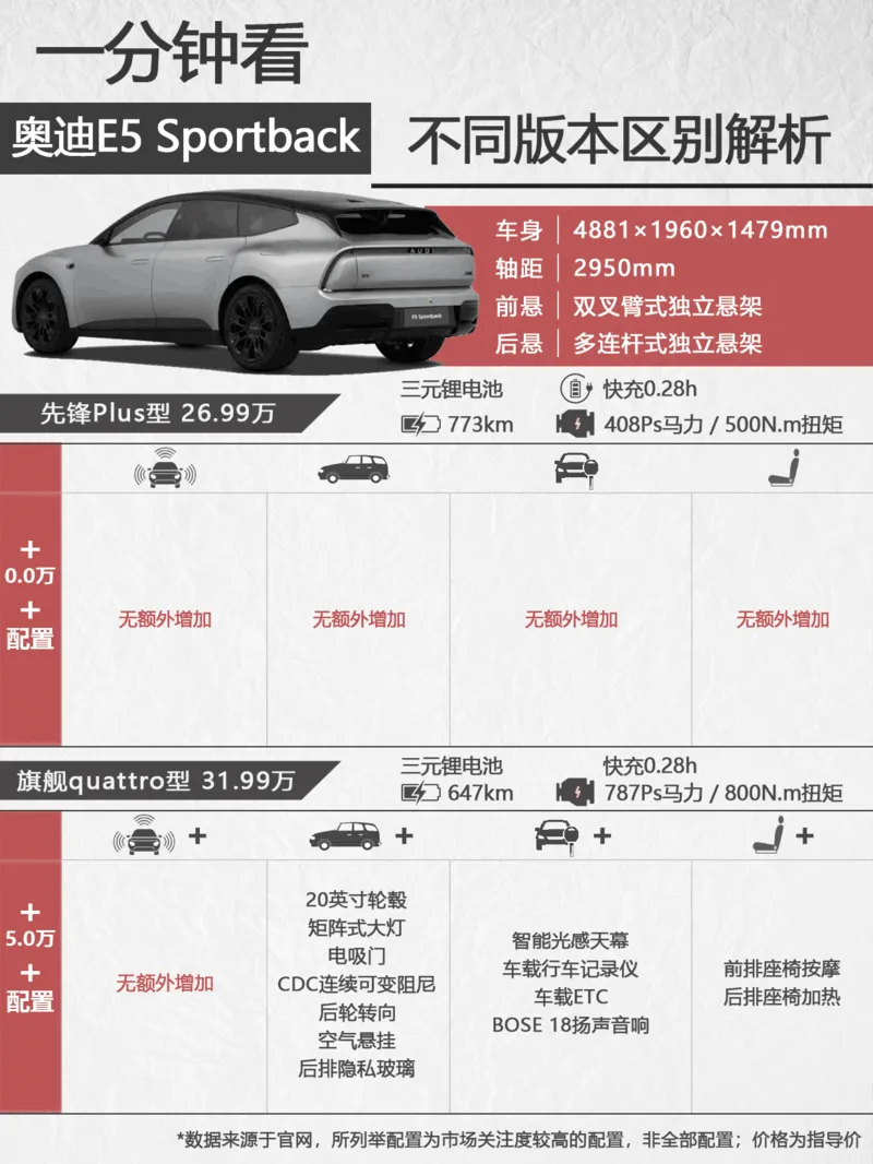 每天看一个车型的不同版本区别解析和选择策略,今天是奥迪E5 Sportback