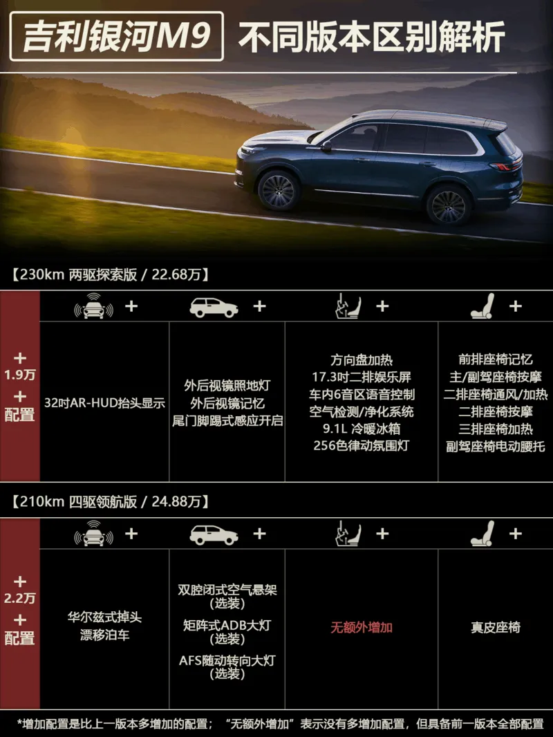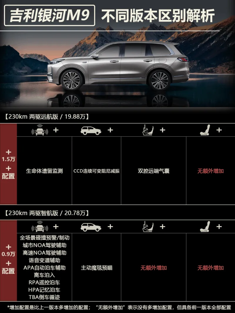 每天看一个车型的不同版本区别解析和选择策略,今天是吉利银河M9。