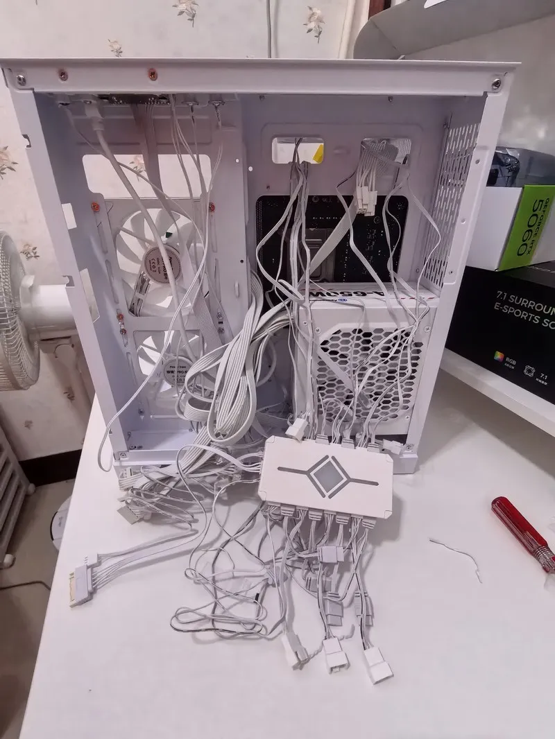 话说之前有不少放鸽子的装机者,有约好上门装机时间后,等不及自己上手安装的,有临时被家长叫了熟人装机的,今天女主角是有一定动手能力的(我在装机,她在墙面给走网线敲钉子),本来她说自己装,想着风扇线很麻烦就还是约我来。