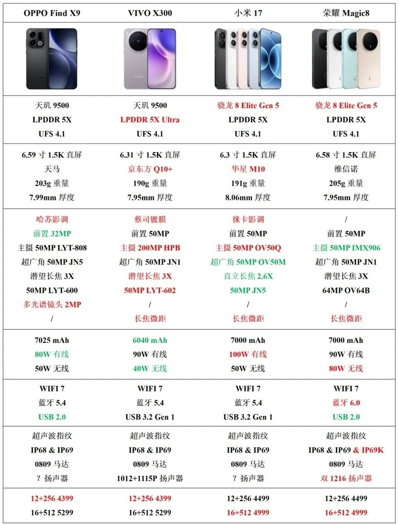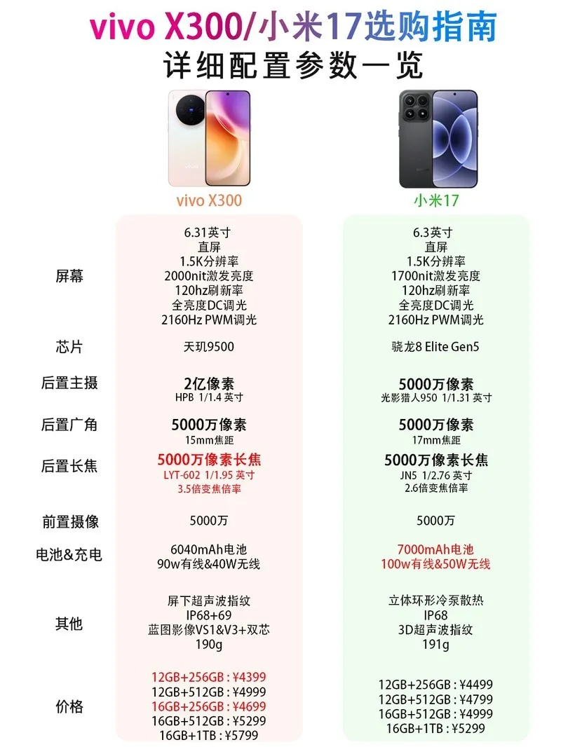 - vivo X300:影像轻薄旗舰。2亿像素HPB主摄+自研影像芯片加持,机身最轻薄,适合看重拍照和手感的用户。
