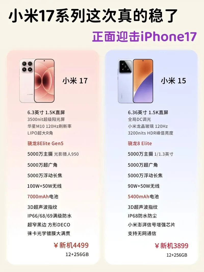 小米 17 系列的预热节奏这次玩得挺狠,直接跳过 16,一上来就喊着要“跨代升级、全面对标 iPhone”。最新的爆料里,最让人意外的不是屏幕和相机,而是电池容量的提升,明显比上一代更大胆。
