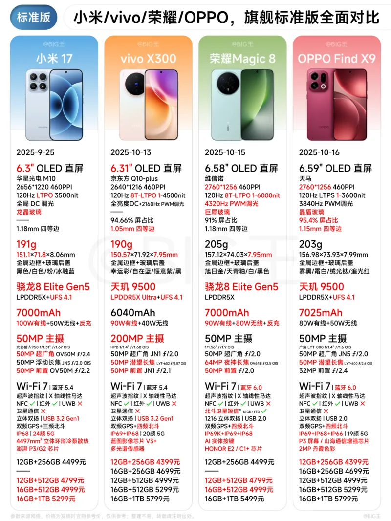 小米、vivo、荣耀、OPPO年度旗舰全面横评,标准版与Pro版如何抉择?