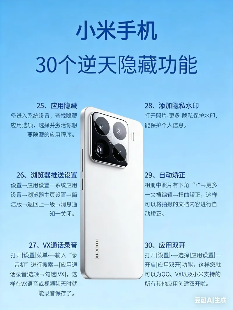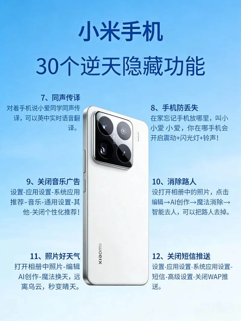 用小米17的存下吧,很难找全了!…… 5000+买的手机。隐藏功能值300 无水印存图、背屏玩法、关闭摇一摇广告、拍照预设参数导入…… 赶紧收藏设置起来