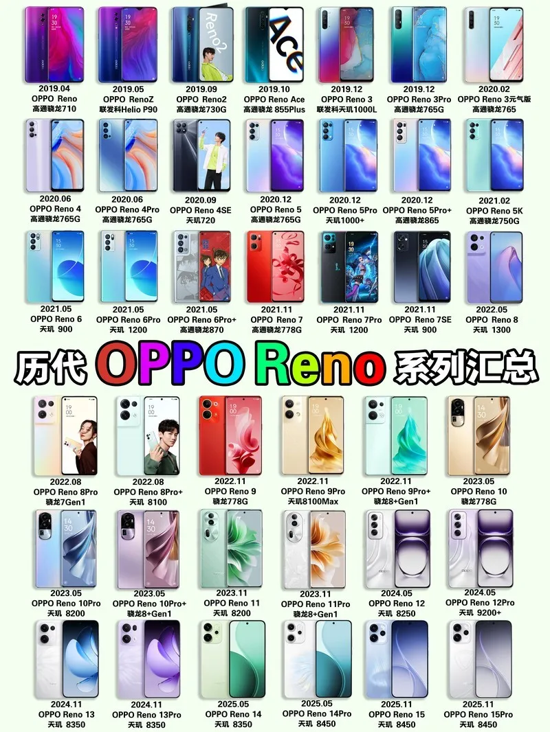 截至目前,oppo的Reno系列已经更新到了15代