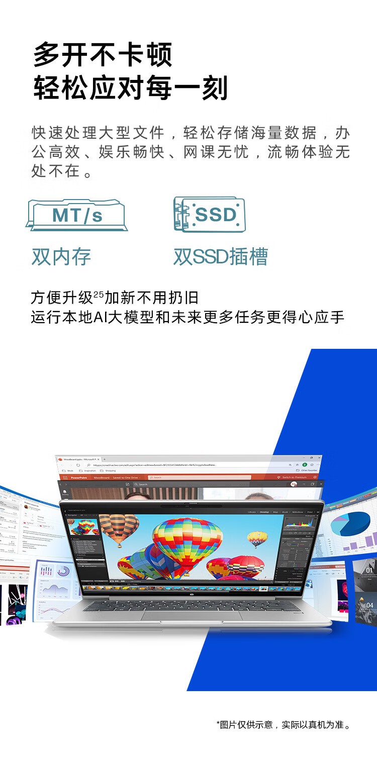 核心配置真的没话说!标压锐龙7 H255处理器太能打了,8核16线程的实力,同时开十几个浏览器标签+Excel数据运算+PS修图都丝滑无卡顿,剪短视频、处理大文件也秒速响应,多任务办公完全不费劲。16G内存+1T超大固态硬盘,开机只要几秒,大型素材包、项目文件秒速加载,再也不用为存储不够焦虑,工作学习效率直接翻倍。
