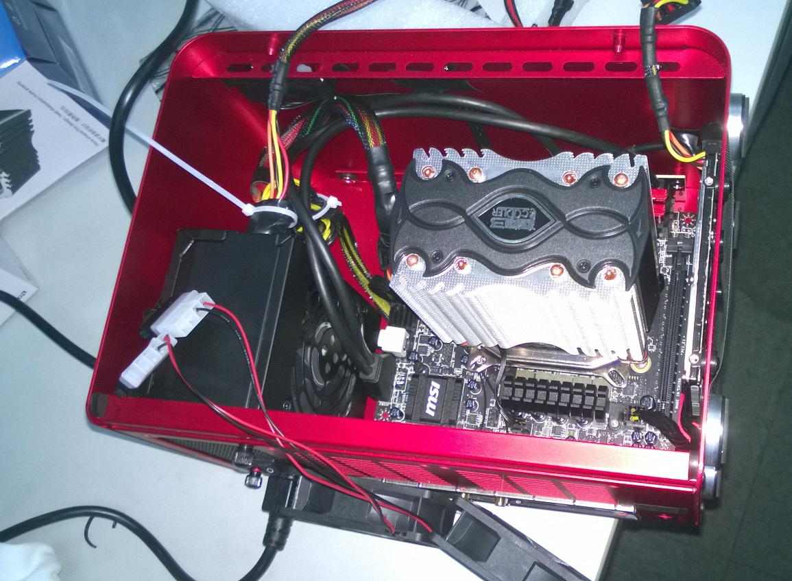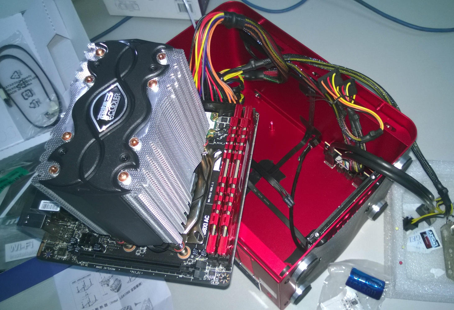 A88X的ITX只有三家,华硕儿子的布局首先排除,技嘉的只有纯D的数字接口转不成办公室的VGA显示器,因此用MSI。R36贴片电感、DARK CAP电容,用料厚道,intel的wifi+蓝牙芯片市价就接近200,所以699满减到649也挺好了,可惜送的T4散热器是ITX机箱不够大的;