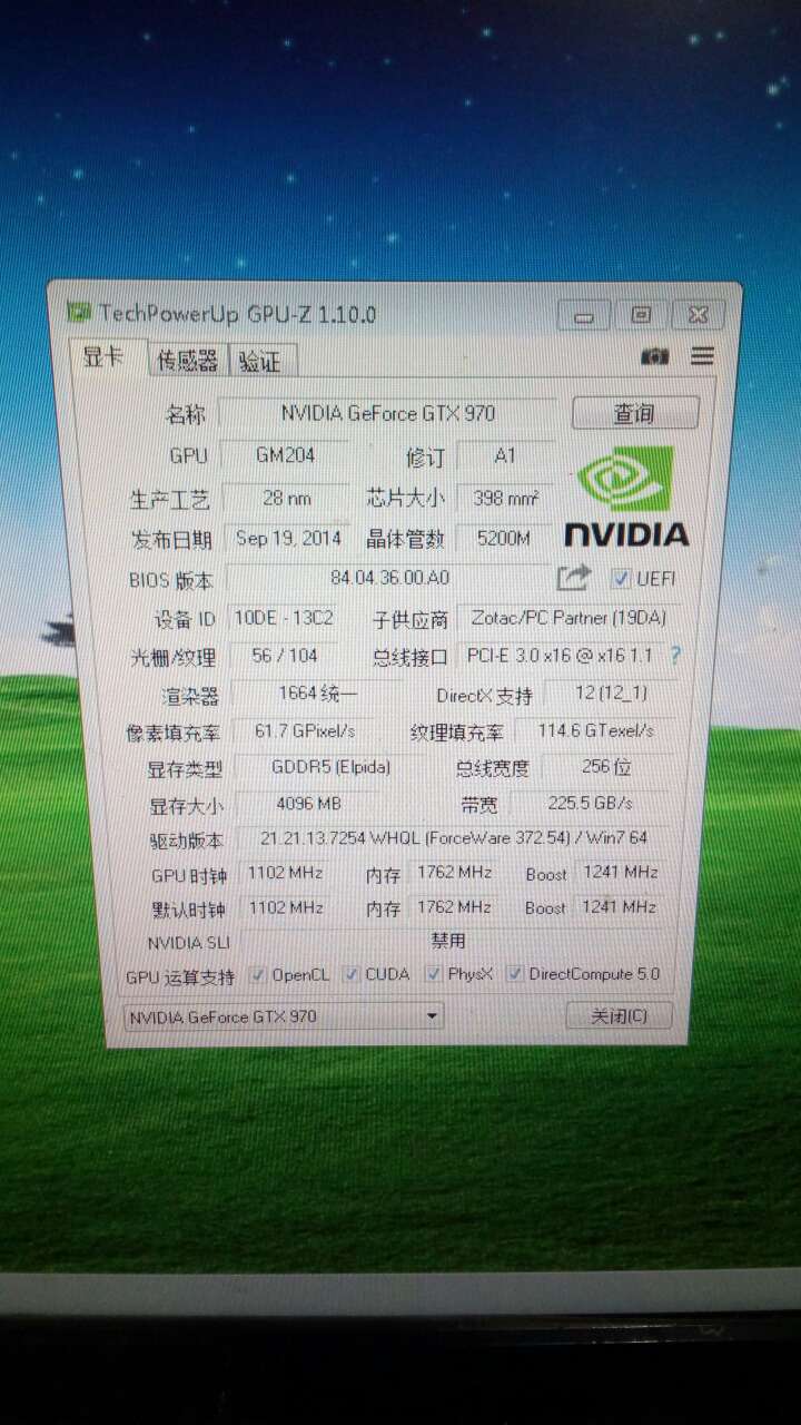 芯片厂商:NVIDIA,显卡芯片:GeForce GTX 970,显存容量:4GB GDDR5,显存位宽:256bit,核心频率:1203/1355MHz