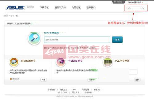 到华硕官网驱动下载页面,搜索ATK