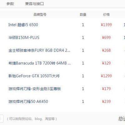 CPU i5 6500散片 1204元