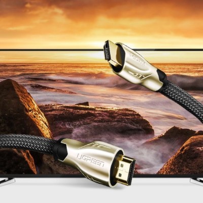 下图为绿联HDMI线,支持4K*2K分辨率,并且支持音视频同时传输,电脑连接电视后可设置为复制模式(两个屏幕显示一样的内容)或者扩展模式(两个屏幕显示不一样的内容),具体可以在电脑“屏幕分辨率里”面进行设置(此为win7系统)。应用广泛,适合连接电脑、显示器、投影仪、电视或者家庭影院类设备。