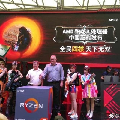 AMD今天在ChinaJoy展会上正式发布了AMD锐龙3处理器,并打出了全民四核天下无双的宣传口号。