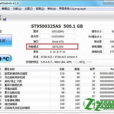 另外关于怎么看硬盘接口是SATA2.0还是SATA3.0,这个大家也可以借助CrystalDiskInfo工具查看,在传输模式一栏,我们可以看到有SATA/300字样,说明其传输速度是300M/s,属于SATA2.0接口硬盘。如果传输模式显示是SATA/300,那么说明硬盘是SATA3.0接口。