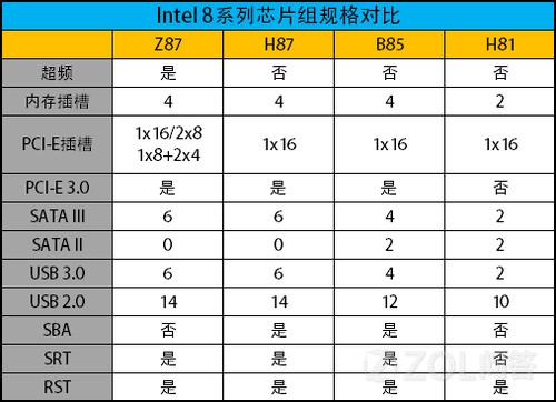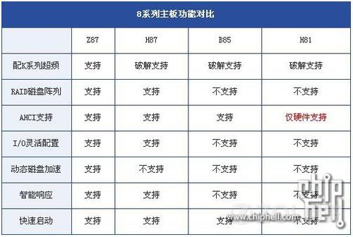 那位高手指点哈,Intel芯片组Z87、H87、H81、B85各有什么功能,要说详细点。