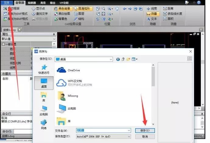 第五步:最后,文件编辑完成之后,点击文件下的保存命令,将文件命好名称,之后将图纸文件存储在指定的存储路径就OK了。