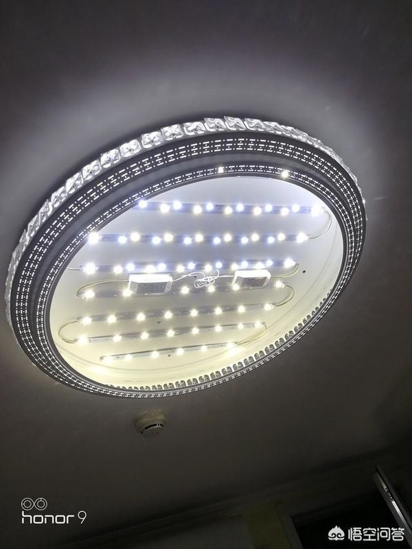 看图片应该上半部分和下半部分是并联的,上下部分中的led又各是串联。下半部分的某一个led坏了或者某个地方断了,导致整个小半部分都灭了。可以用万能表或者试电笔检查一下是哪颗坏了,然后把那一个换掉。需要买配套的同型号的led,换的话要用到电焊。