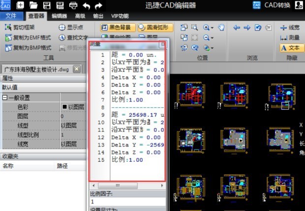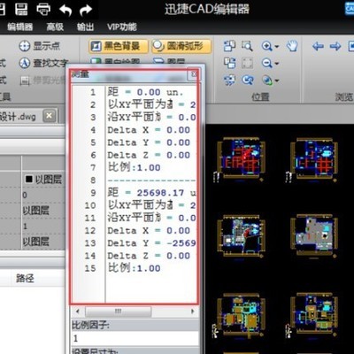 命令已激活,鼠标选中图纸中需要进行测量的两个点,即可在测量显示框中出现该两点之间的距离及比例。