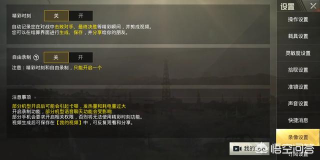 1.游戏自带录像类设置。某些游戏设置中提供视频录制功能,比如刺激战场点击设置下拉找到录像设置里面有精彩时刻和自由录制两个选项二选一可供玩家录制,如图。再比如王者荣耀的设置点开录像设置后有王者时刻和自由录制也是两个二选一。