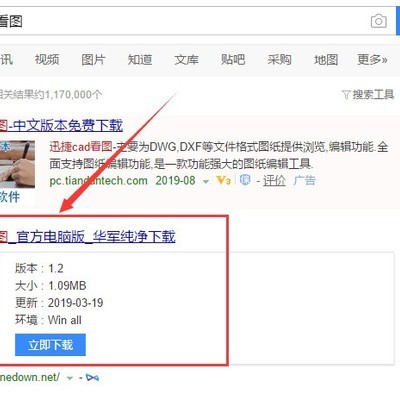 步骤一:如果没有安装该软件的小伙伴们,就在浏览器的搜索框中进行搜索迅捷CAD看图软件,之后在搜索的结果中再根据系统提示的安装步骤将迅捷CAD看图软件进行安装到电脑中。
