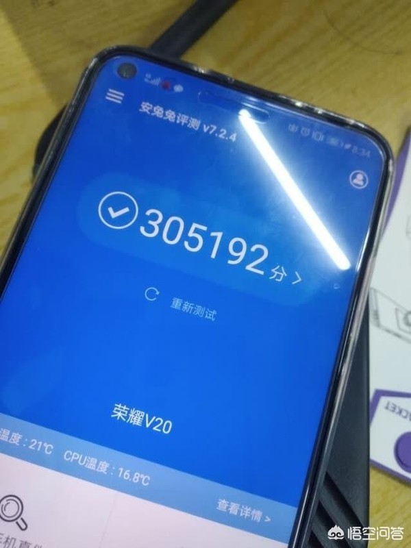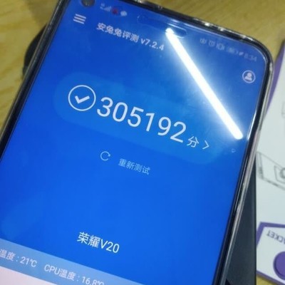 荣耀V20搭载着麒麟980处理器,其跑分在三十二万分左右。6.4英寸打孔全面屏设计,屏幕材质是LCD。后置了4800万像素三摄(主摄是索尼IMX586传感器),前置2500万像素,电池为4000mAh,并且手机还加入了液冷散热系统。