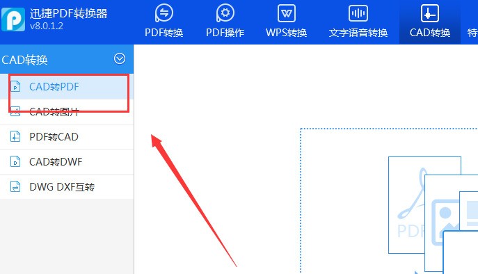 2.在CAD转换器应用界面中,我们将看到CAD版本转换,CAD转PDF,CAD转图片,PDF转CAD和其它转换功能。