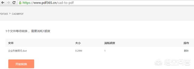 3.例如,我们以CAD转PDF为例,单击CAD转换器中CAD转PDF选项。找到需要转换的CAD绘图提交,然后单击"开始转换"按钮。