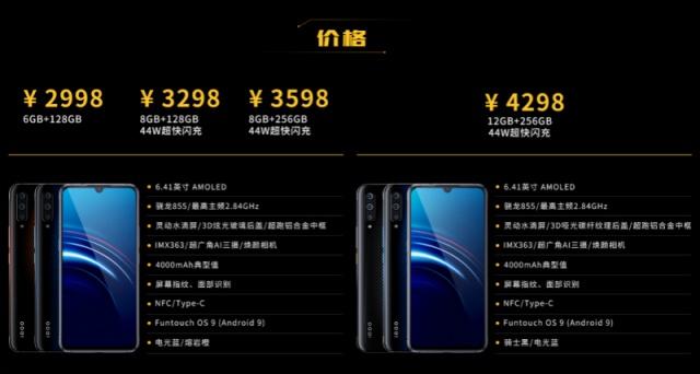 6+128GB售价2998元,比小米9便宜1元,不过该版本没有44W快充丨8 +128GB售价3298元丨8+256GB售价3598元丨12+256GB售价4298元。