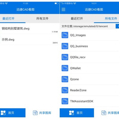 操作步骤二:在软件住界面中可见“最近打开”和“所有文件”两个板块。当用户第一次使用该看图软件时,在最近打开界面会出现“示例.dwg”文件。