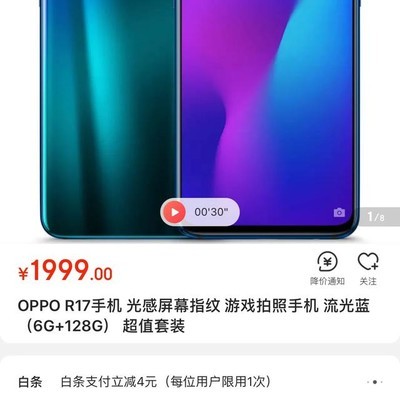 OPPO R17外观真的很惊喜,很好看,和刘海屏不一样,水滴屏很有自己的特色,配置还不错,玩游戏也还可,拍照效果超级好,电池续航还不错;指纹解锁稍微有一点点迟钝,但是还是可以做工外观:外观很不错,到手真的很喜欢,觉得确实是用心了,配色很不错,手感蛮好的,屏占比也够高,追剧玩游戏都挺好的配置性能:OPPO R17配置还可以,玩游戏还是很不错的,运行的很舒畅,偶尔游戏中会有卡顿的情况,不过在能够接受的范围内,电池还行,续航还是不错的系统流畅度:系统流畅好用,运存也还够大,不怕卡顿拍照效果:综合而言后置像素不如前置来的高,前置的自拍效果真的超级棒,不需要借助其他软件也能排出不错的照片