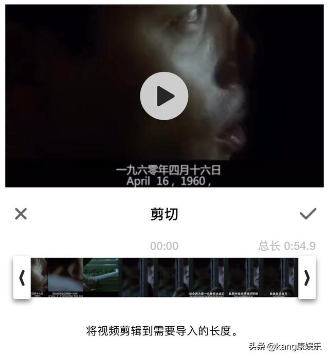 4:点击小剪刀后此时视频会呈现出拉条模式,可以根据个人需要剪辑个人需要长度,完成后点击打勾进入编辑界面