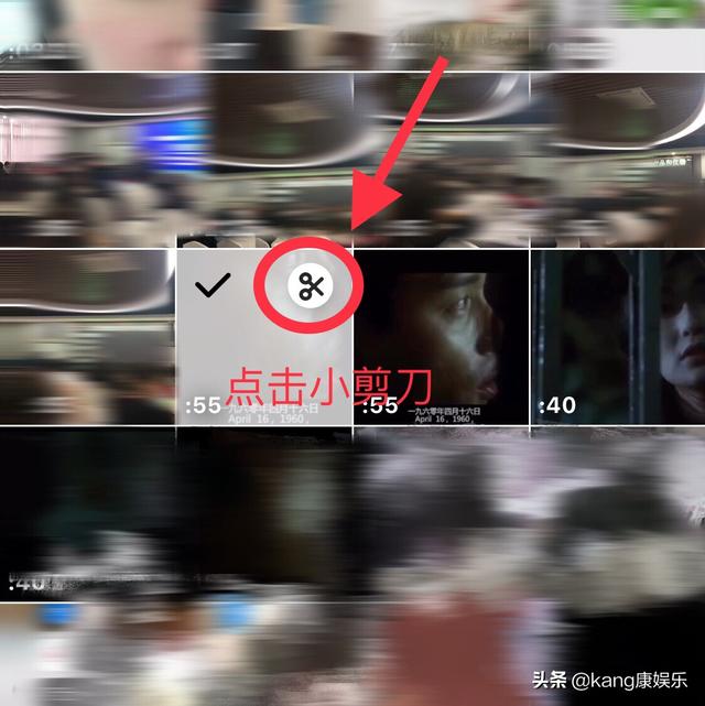 3:在视频列表找到所需要剪辑的视频点击视频,此时视频右上角会出现一个小剪刀符合,点击小剪刀