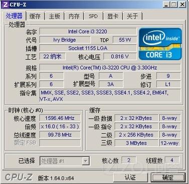 用1.61-1.68的CPU-z显示都没有,可Intel官网是写着i3 3220有VT-x的