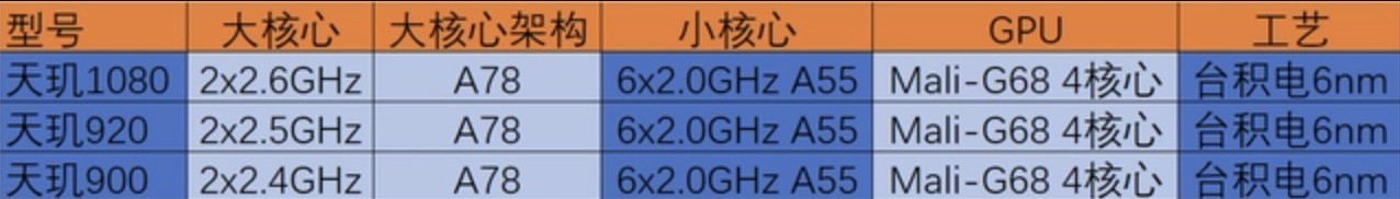 参数方面,天玑1080采用台积电6nm工艺,拥有2个2.6GHz的A78大核以及6个2.0GHz的A55小核,Mali-G68 MC4 GPU。和Redmi?Note?11系列采用的天玑920,大核频率进一步增长。