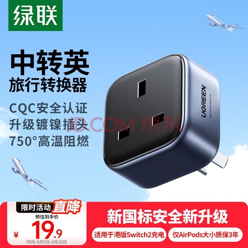 绿联香港转换插头适用于Switch2转换头 英标转换插头/插头转换器/国标转英标/中转英转换器【内地适用