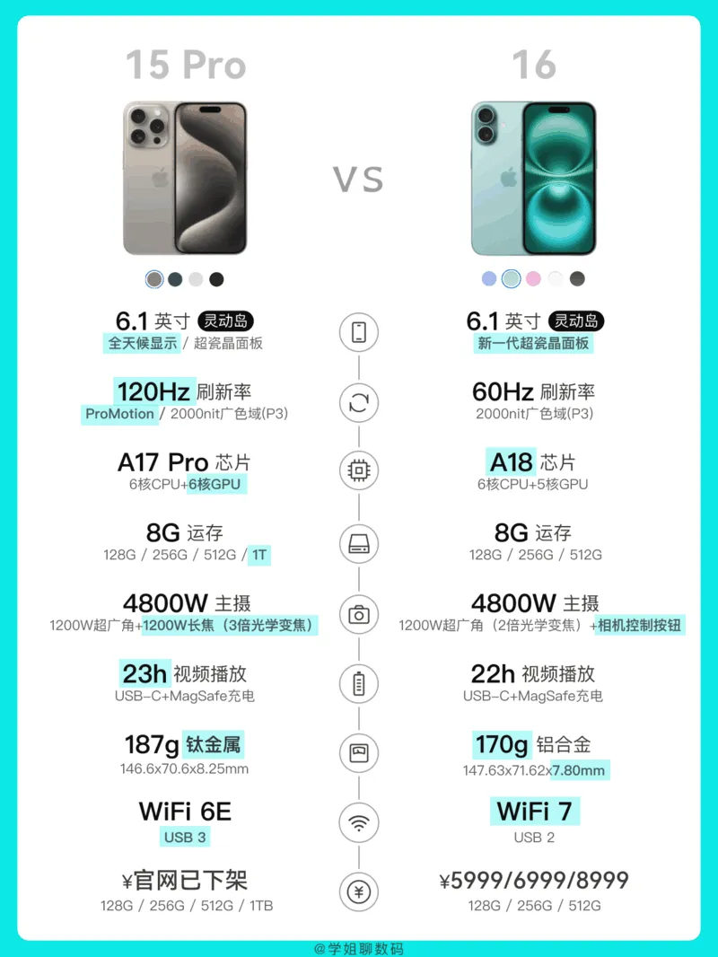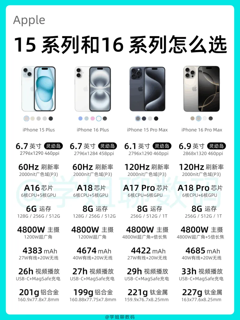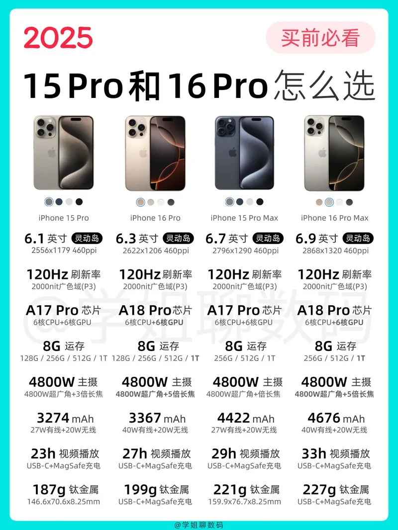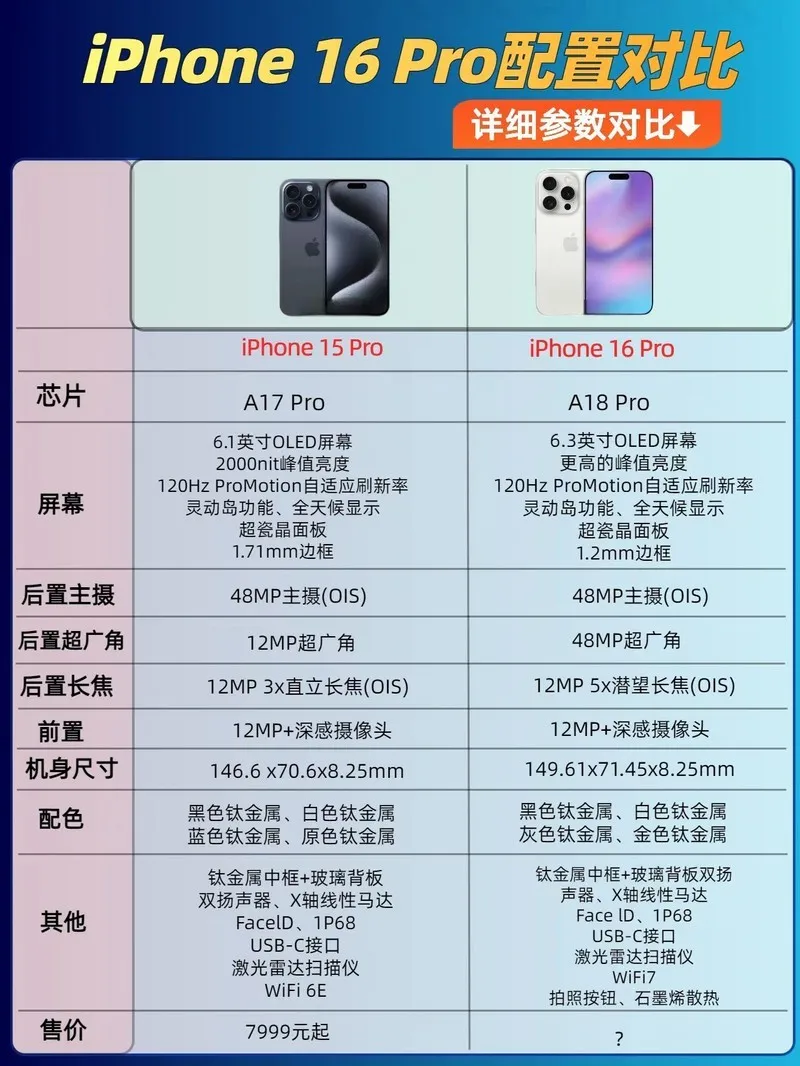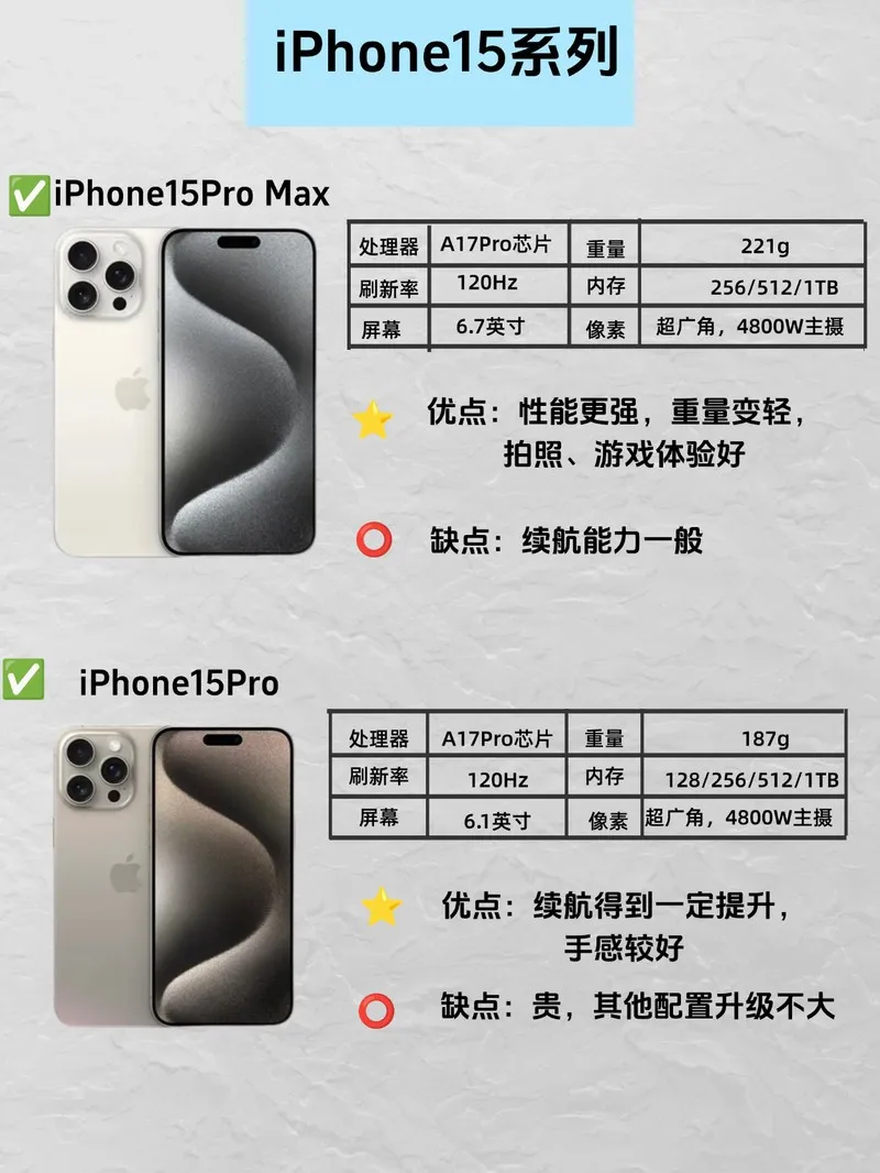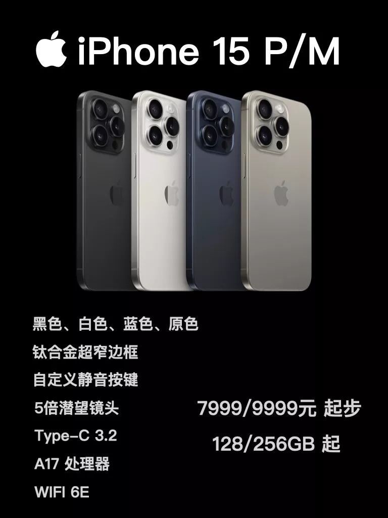 钛金属,A17 Pro芯片,4800万像素主摄