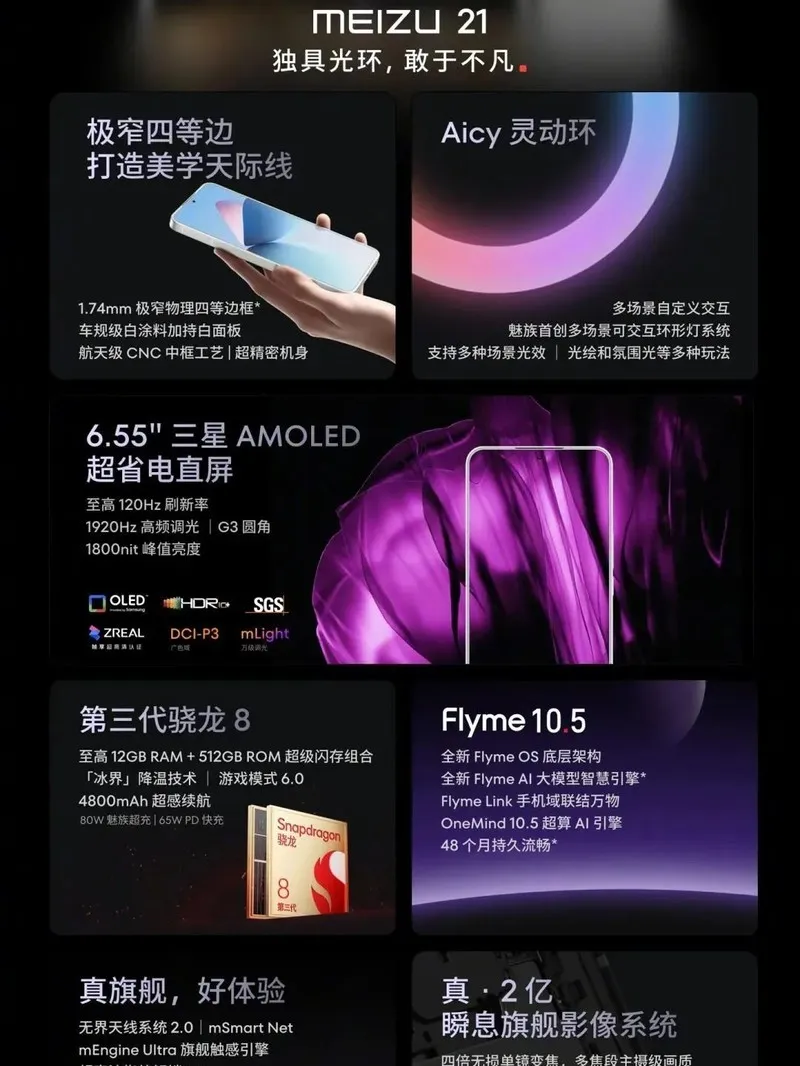 1.74mm极窄四等边直屏,骁龙8Gen3,2亿像素