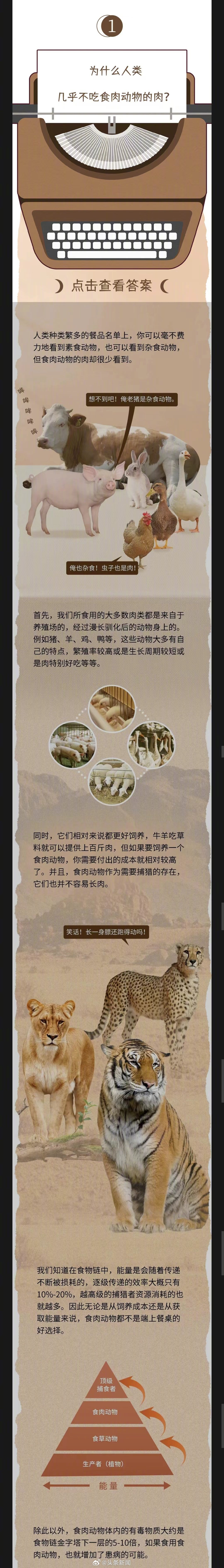 据槽值:人类种类繁多的餐品名单上,你可以毫不费力地看到素食动物,也可以看到杂食动物,但食肉动物的肉却很少看到。
