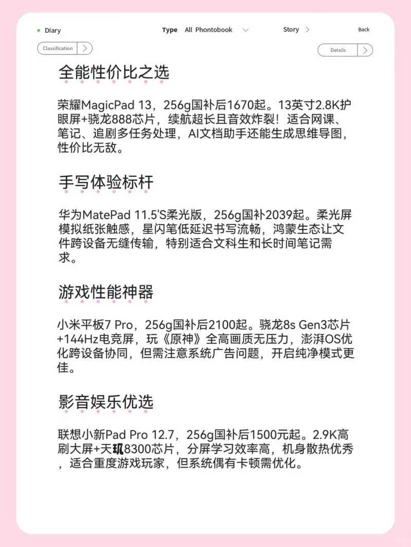 大学生买平板还是谨慎为之,因为为你消费买单的是父母,平板的作用更多是娱乐以及轻办公,如果打着学习办公的名义去买2W的平板那真的过分了。