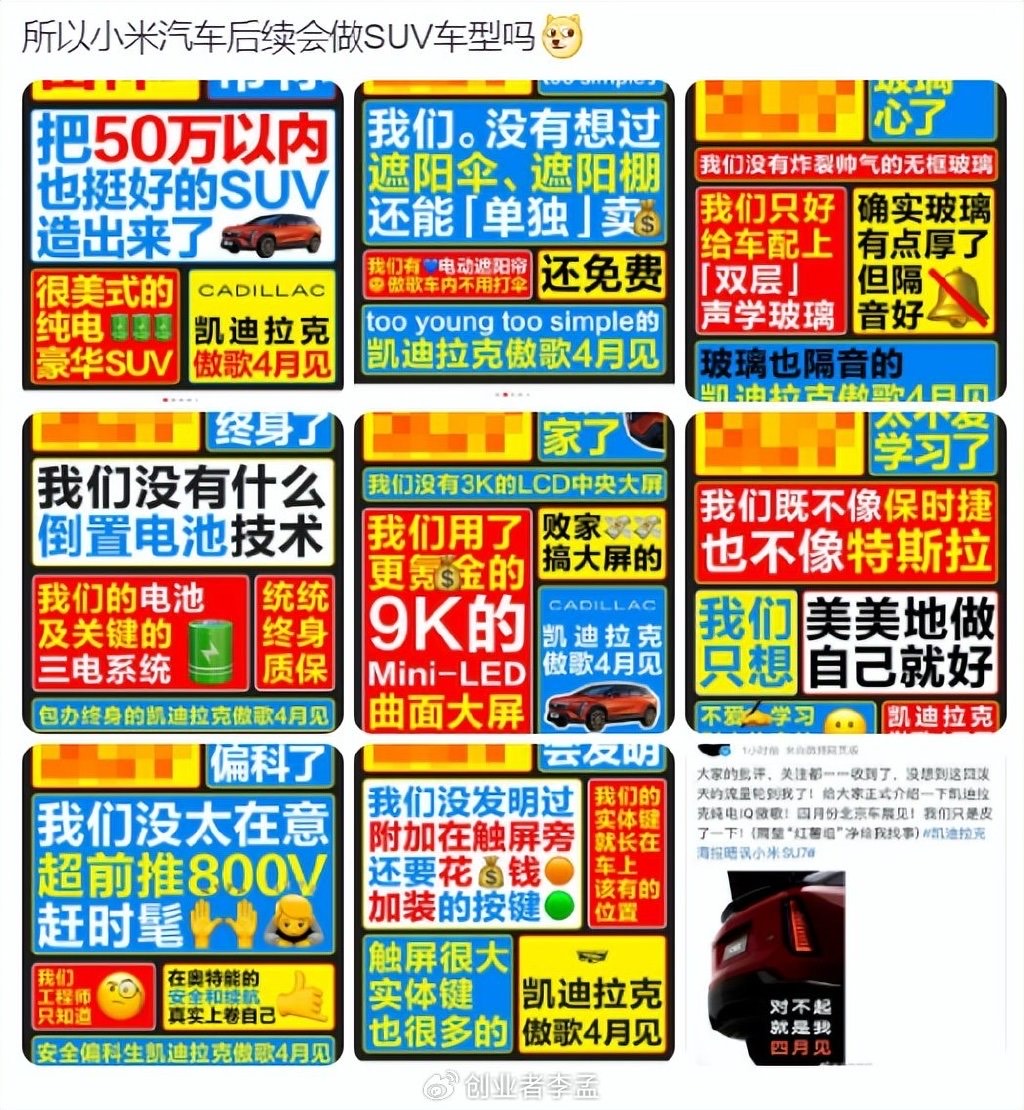 凯迪拉克预热新车,海报暗讽小米 SU7 ,如何看待此事?