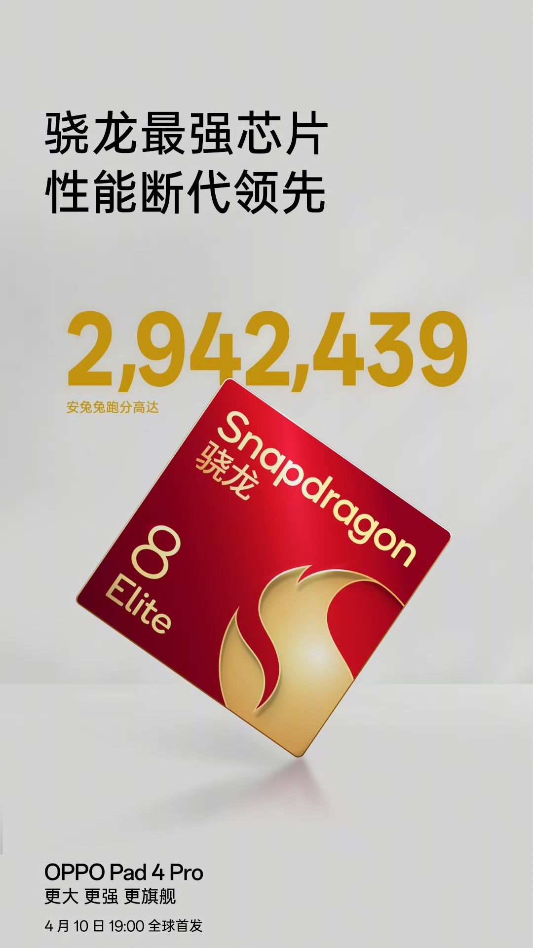 OPPO Pad 4 Pro 预热:安兔兔跑分达2942439分】