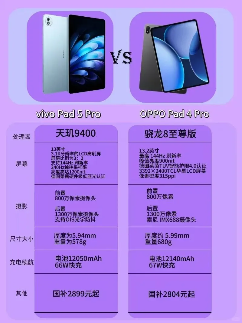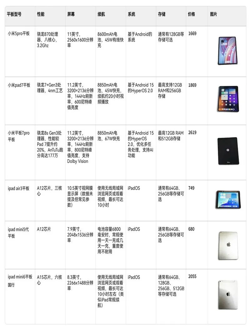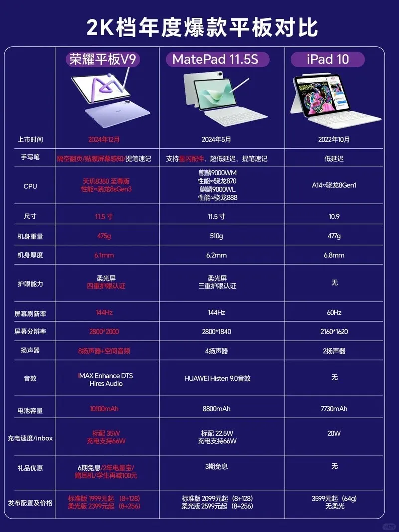 2K档年度爆款平板,性能对比