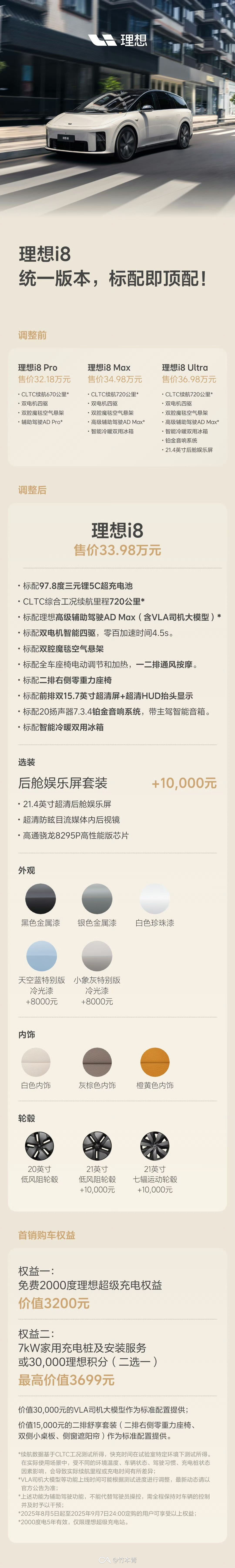 理想i8统一版本:取消Pro、Max、Ultra划分方式,售价统一为33.98万元】