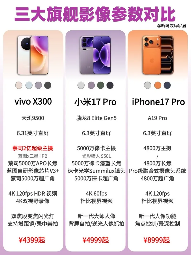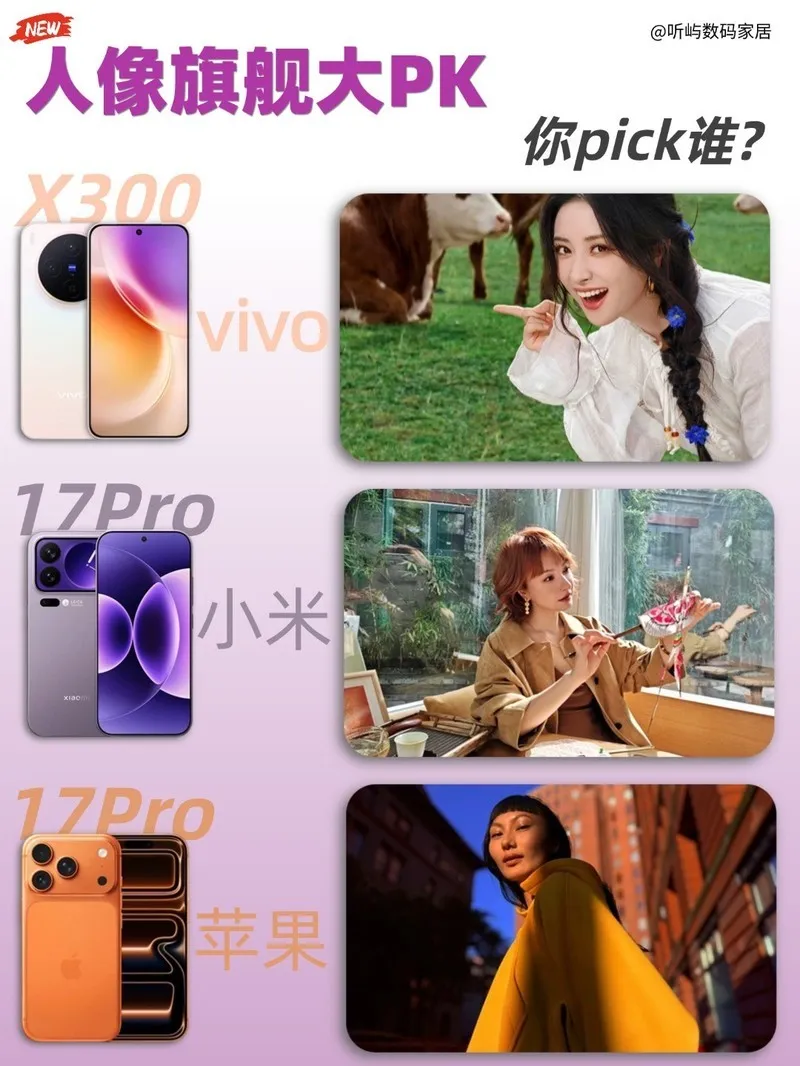 今天跟随小听一起来看下vivo、小米、🍎, 三家都旗舰卷王,那到底有啥不一样呢?尤其影像方面~~