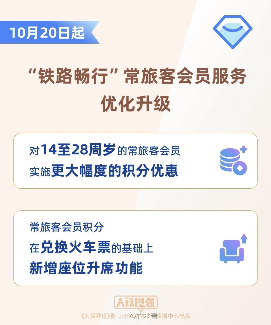 中国铁路:10月20日起,将升级“铁路畅行”常旅客会员服务】