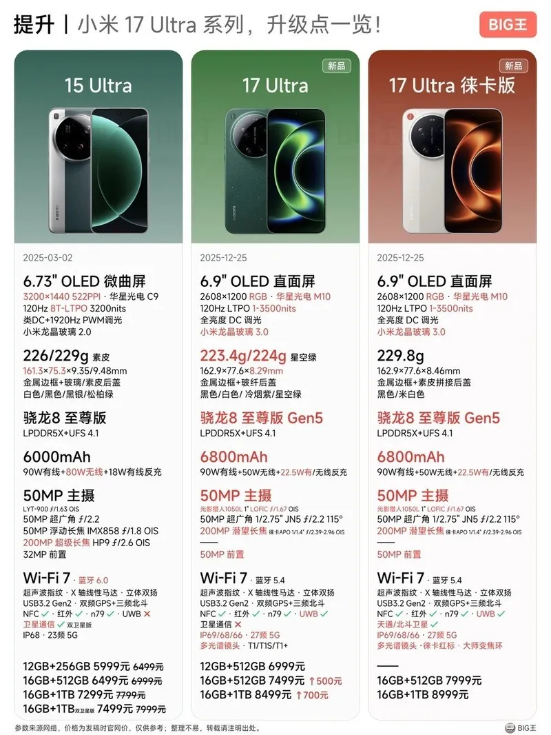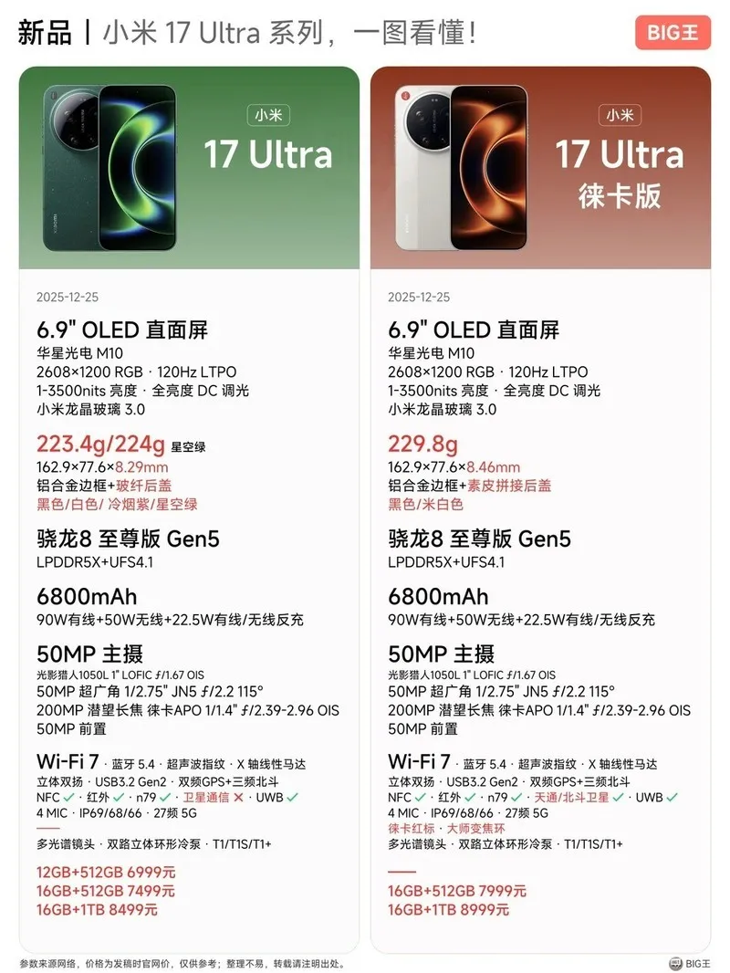 徕卡1英寸光影大师,第五代骁龙8至尊版移动平台,6800mAh小米金沙江电池