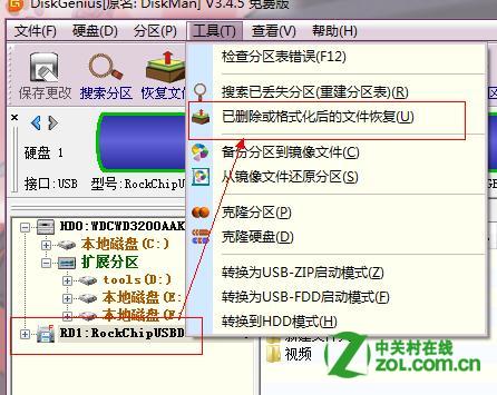 下载DiskGenius选择需要恢复的硬盘分区.(点击蓝色软件名字即可下载)这款软件不仅仅是能恢复被删除的文件,还能恢复因为意外格式化的分区的文件。选择上面的菜单那的选项后就会出现如下界面