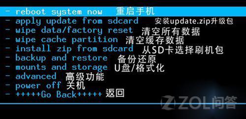 apply update from sdcard 使用SD卡上的update.zip文件更新系统